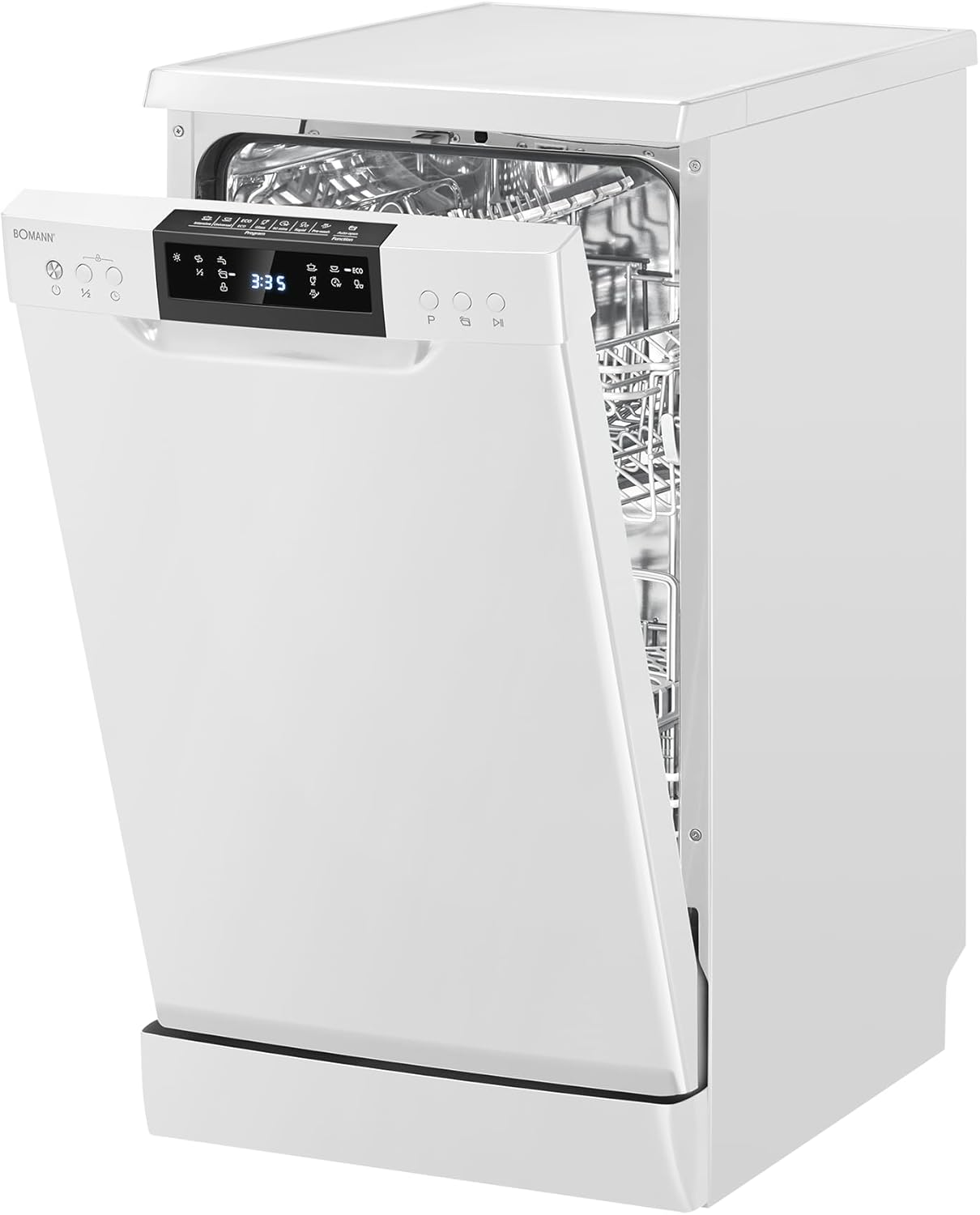 Bomann Geschirrspüler 45 cm 10 Maßgedecke Spülmaschine Stand o. Unterbau 7 Programme und 2 Sprühebenen Dishwasher mit Startvorwahl Geschirrspüler unterbaufähig LED- Display GSP 7418 weiß