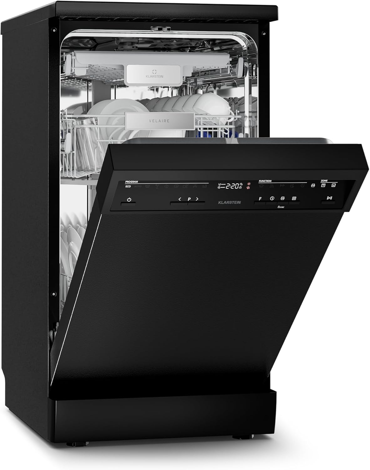 Klarstein Velaire Geschirrspüler 45cm Freistehend - 10 Plätze, 9 Programme, 42 dB, B Energieklasse, AquaStop, Kindersicherung, Spülmaschine, Geschirrspülmaschine