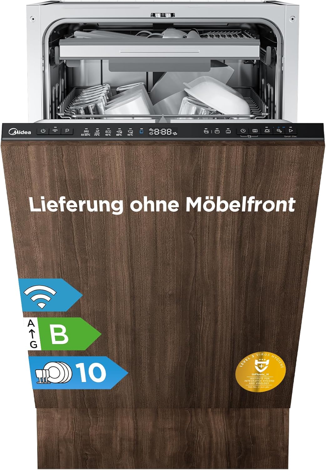 Midea Geschirrspüler 45 cm Vollintegrierbar, 10 Maßgedecke, B-Klasse, Auto Open, Ion Dishfresh, HygieneCare+, 42dB Extra Leise, Höhenverstellbarer Oberkorb, Spülmaschine mit Home Connect