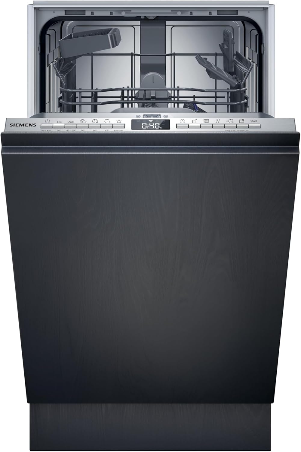Siemens SR63EX25KE iQ300 Vollintegrierter Geschirrspüler, 45 cm, 10 Maßgedecke, 6 Programme, varioSpeed Plus und autoOpen dry, aquaStop, Home Connect