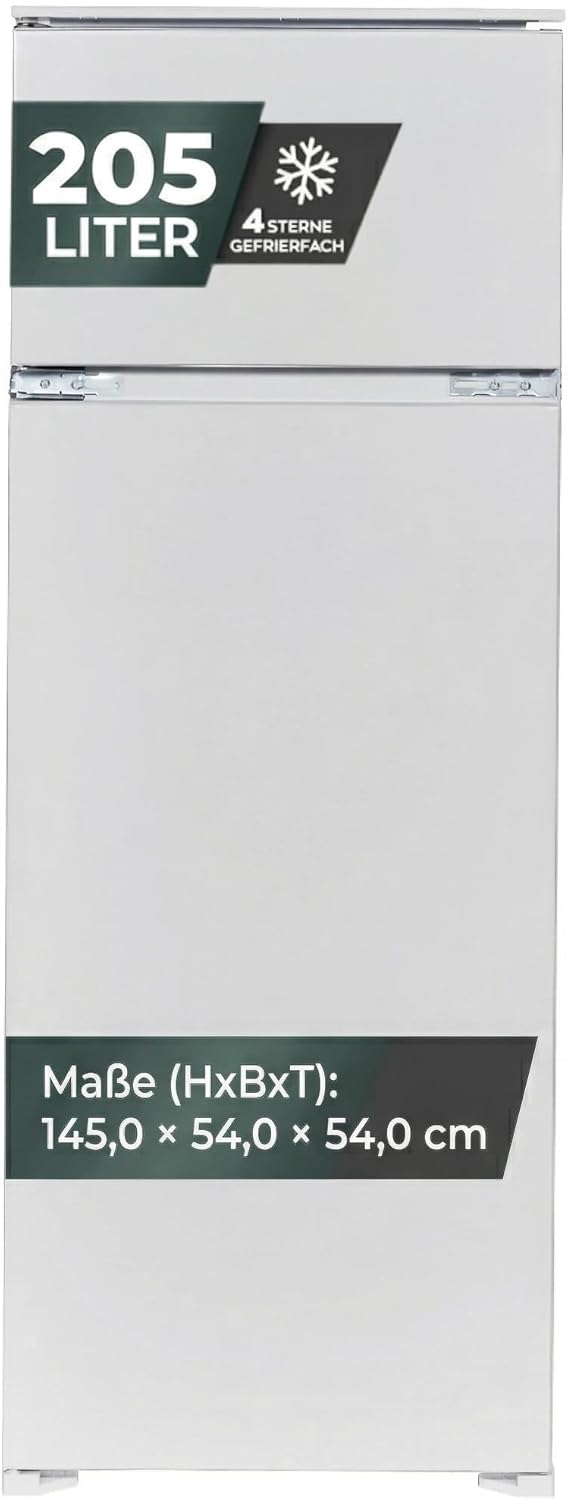 YUNA Einbau Kühlschrank Fedora EKG225E 205L Kühl- / Gefrierkombi LED Schlepptür